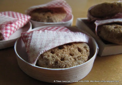 Osallistuin yahoon minit listan mummola vaihtoon. Minä lähetin leipää puisessa astiassa ja liinan.