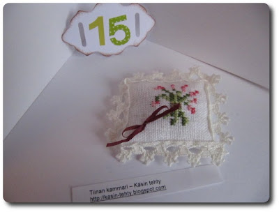 ... vaihdettiin myös Maisan kanssa. Ihana muistitaulu ja hieno n.1cm pituinen tonttu.