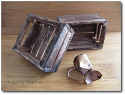 Minikokoisia siis, laatikon pohjan mitat on noin 3x4cm ja kannu n.2cm.