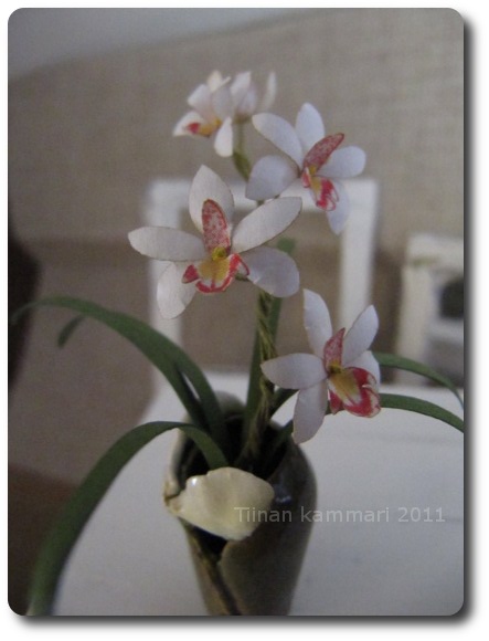 2. On tavattoman kaunis ja herkkä. Aivan oikea valinta laittaa maljakkoon. Pidän kovasti orkideoista. Minulla on kolme oikeaa, jotka kukkivat ahkerasti vuodesta toiseen. Minikoossa en ole tohtinut yrittää. Ehkä joskus voisi, jos saisi jostain tuommoisen hienon kitin hankittua.