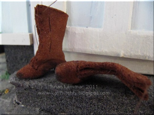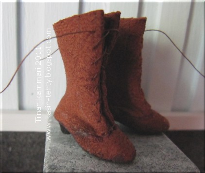 Minä keskityin tälläisiin naisten korkkarisaappaisiin, kotona tein korot. KIITOS LOTTA AVUSTA!!!
