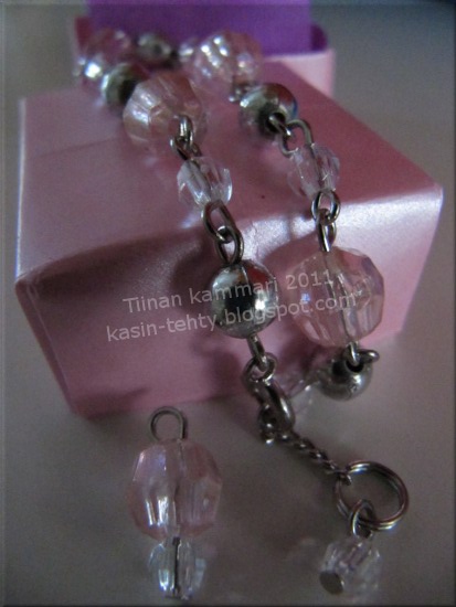 Tämän raitamekon ja seuraavassa kuvassa olevat korut tein jo keväällä, sentään tänävuonna :D