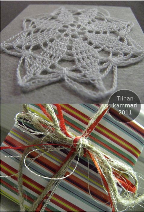 Minä kääräisin pakettiin virkkaamani liinan.