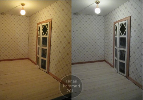 ...valmistuu pikkuhiljaa. Lamppu katossa, puolet huoneesta lattialistoitettu ja oviaukollakin on pielet.
