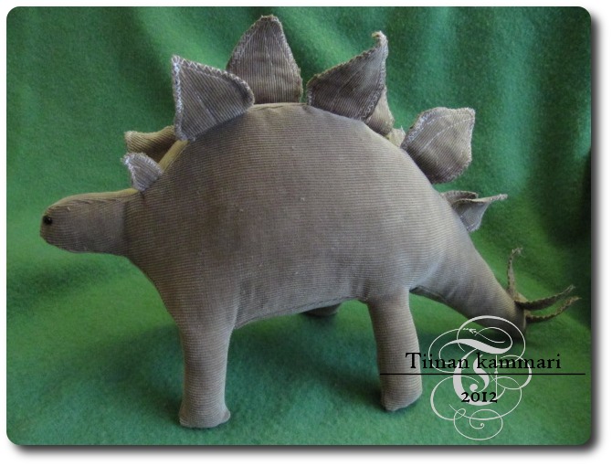 Onpas hieno stegosaurus! Meilläkin asustelee pieni dinopoika, joten täytyy kyllä laittaa idea korvan taakse muistiin - vaikka pehmoleluja istuu sängyllä kyllä jo enemmän kuin tarpeeksi...! :)