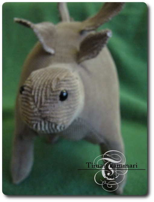 | materiaalina: vanhaa housun punttia ja muoviset turvasilmät |