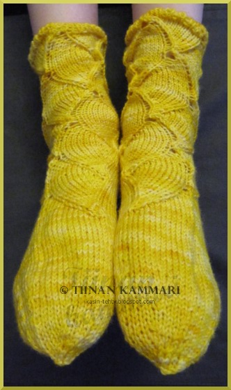 ...ja nämä sukat on myös myöhäiskesän tuotantoa, lomaneuleita, just sopivat ja napakat.