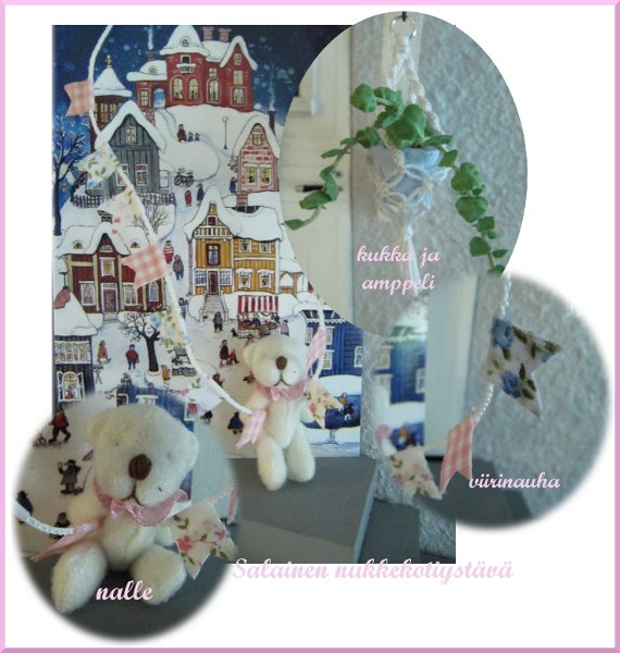 Meillä oli nk-piiriläisten kesken helmikuussa salainen vaihto. Minä sain tämmöisen ihanan paketin josta löytyi pikkuinen suloinen nalle, komea kukka amppelissa ja viirinauha.