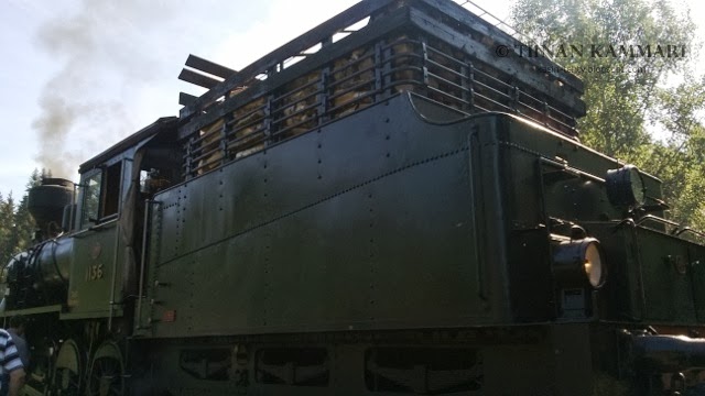 Näky oli mitä vaikuttavin. Veturi päästeli savuja, kun ihastelimme koko junan komeutta.
