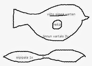(Oma linnunmuoto kannattaa piirtää, koska tämä malli on 'vähän hutera', idea taitaa tulla kuitenkin selväksi mitä tarvitaan.)