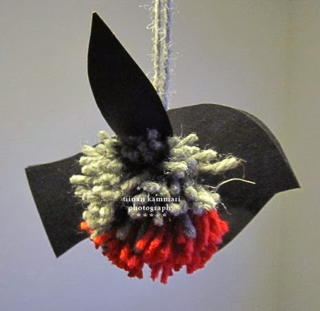 -Lisäksi tarvitset harmaata ja punaista villalankaa pienet nöttöset.