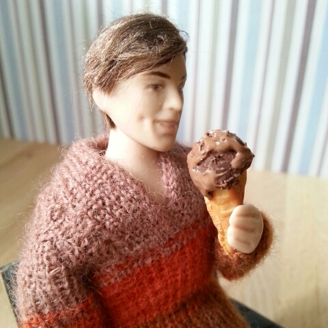 Innostuneisuuden myötä syntyi muutama jäätelötötterö. Materiaalina fimo.