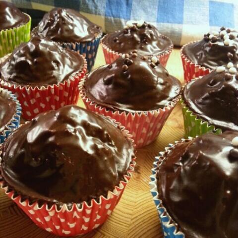 -levitä vähän jäähtyneen pohjan tai muffinien päälle, toimi nopeasti koska kuorrute jämähtää nopeasti