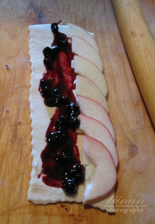 Levitä hillo ja omenat taikinalle.