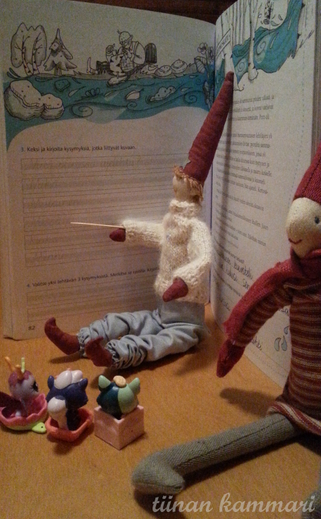 Taavetti opettaa pikkuisille äidinkieltä, taisi olla liian vaikeaa.