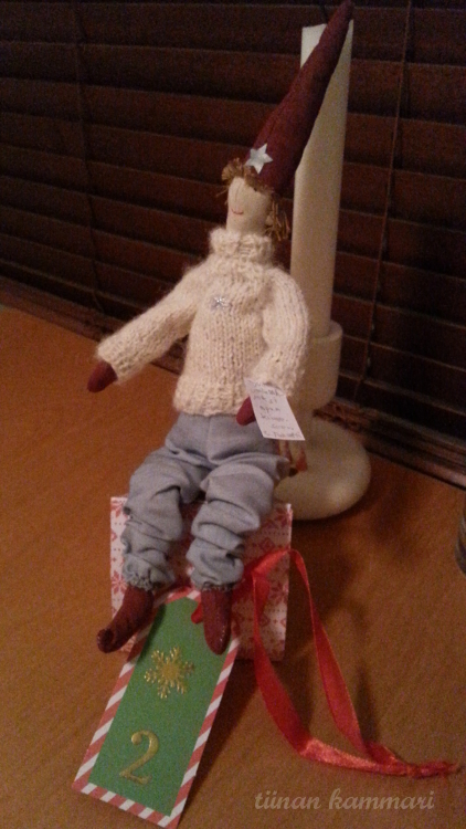 Tänään Taavetti toi joululahjalista välineet ja suklaata.