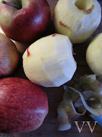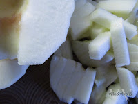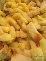 -Kuori ja paloittele n.800g hapahkoja omenoita, muista poistaa siemenkodat.