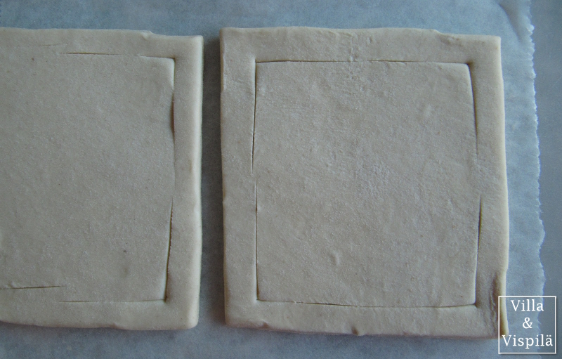 Tarvitset lehti- tai torttutaikinaa ja hilloa.