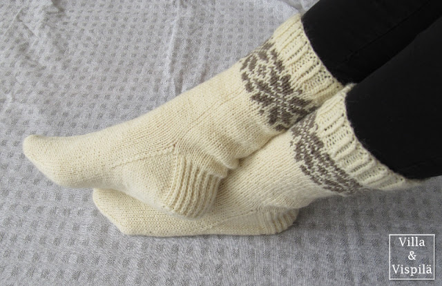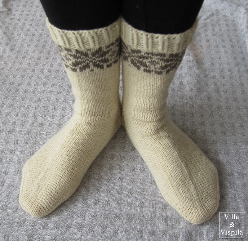 Lankaa olikin juuri sen verran, että se riitti kauniiksi kuvioksi villasukkien varteen.