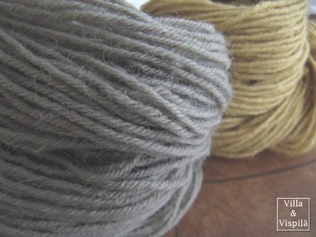 Nimittäin ostin kaupasta pussillisen mustapapuja ja värjäsin niillä tämän kauniin harmaan langan.