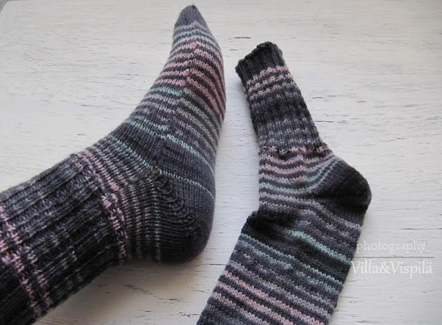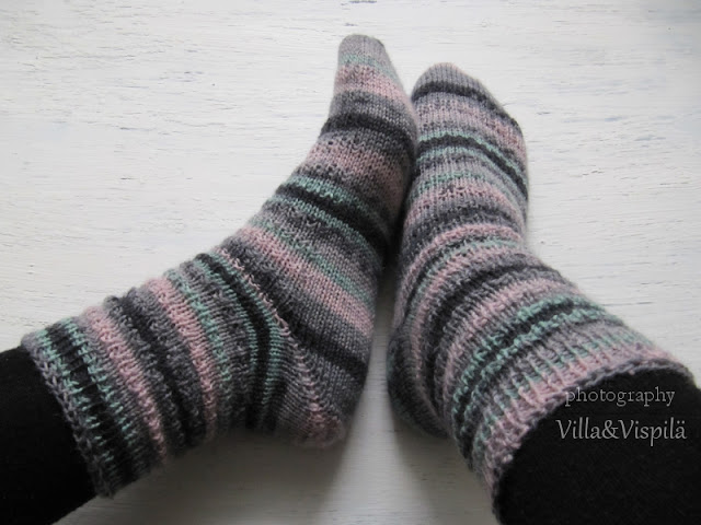 Yllä olevat sukat on neulottu pelkästään Junior raggista.