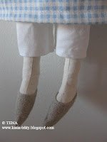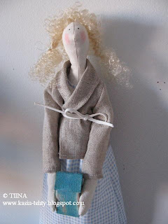 ohje tilda-kirjasta 'sew pretty homestyle' enkelin kaavalla ilman siipiä. Vitsikäs kikkura hius-aines löytyi tiimarista, takki ja kengät on pellavaa ja muut vaatteet erilaisia puuvillakankaita. Postilaatikoita on täällä näkynyt niissä synttäriswapeissa aikaisemminkin.